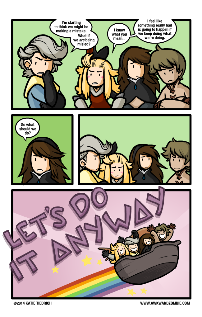 D'ailleurs si c'est pour nous faire attendre que le scénar avance et faire monter le suspense, bah c'est foiré, le twist qui arrive à la fin du chapitre 8 est le twist le plus prévisible que j'ai vu de toute ma vie. Et les héros se laissent avoir comme des bleus... Cette image montre tout ce que je ressens quand à ce passage: